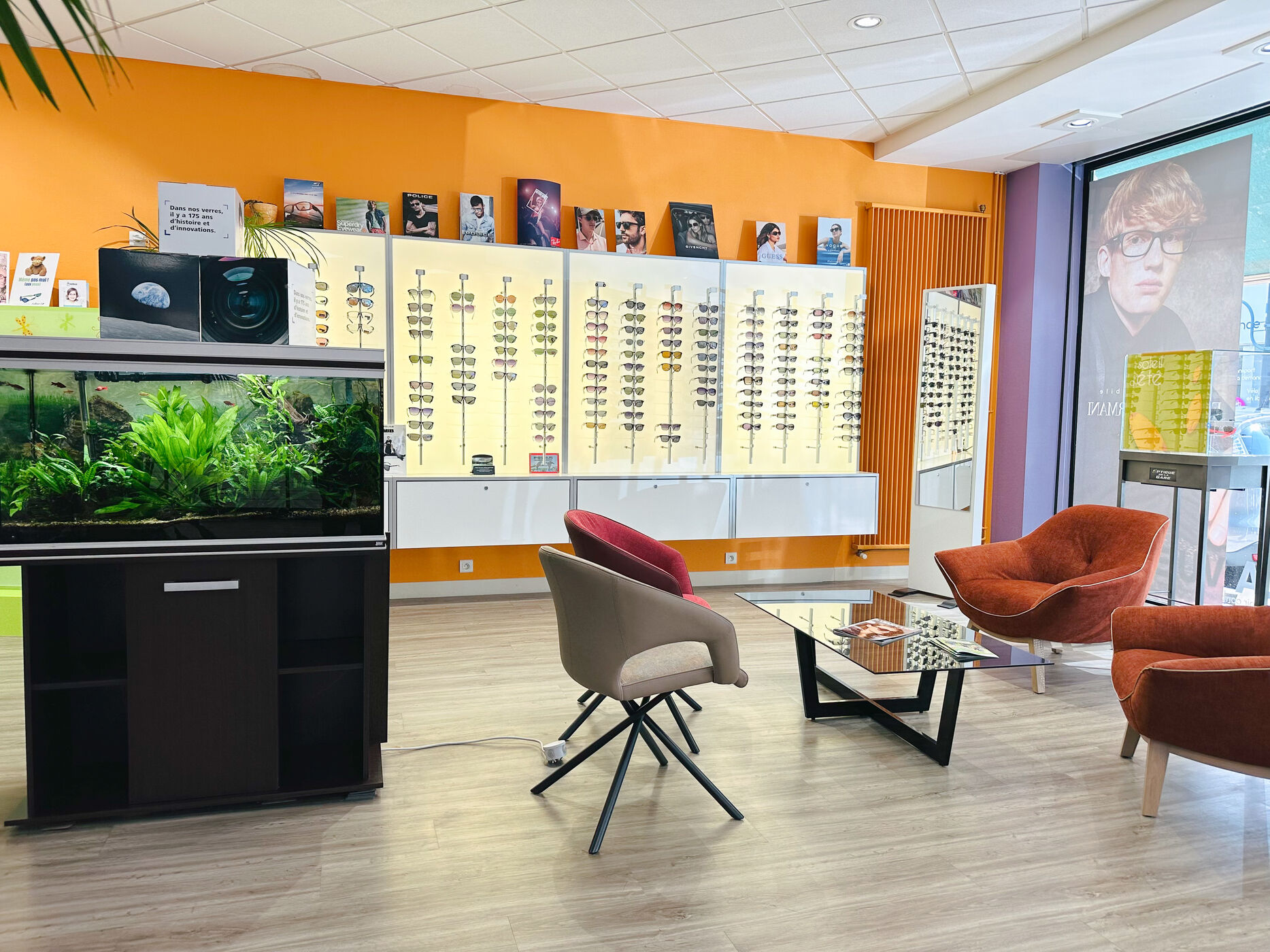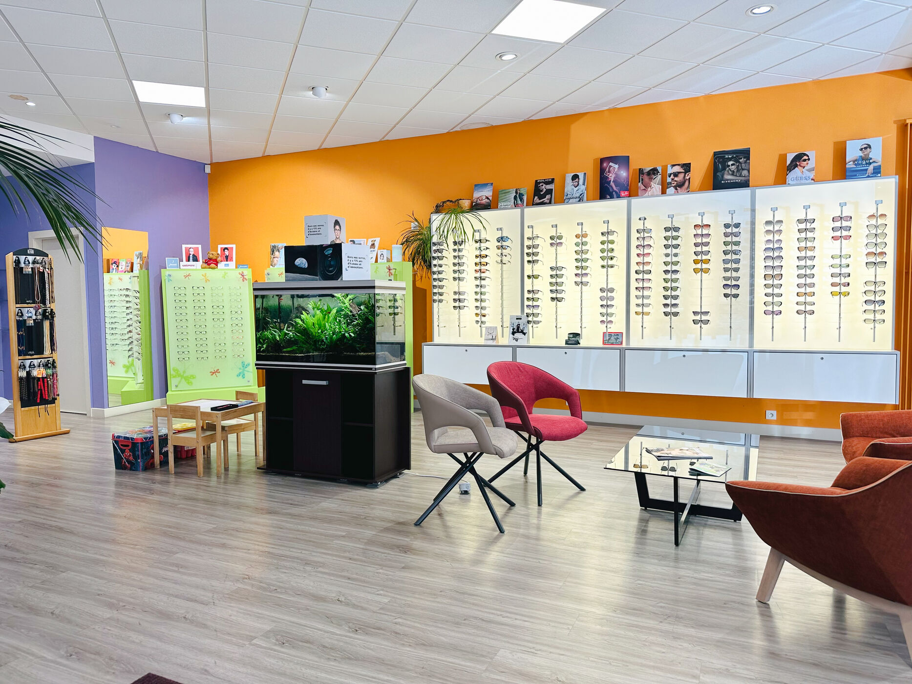 Au sein d'un environnement chaleureux et coloré, Emilie et Nicolas, tous deux opticiens diplômés, vous accompagnent pour trouver l'équipement optique le plus adapté à vos besoins et à vos envies.